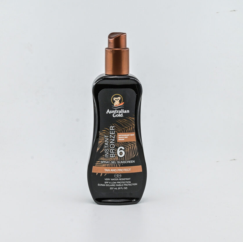 Australian Gold® SPF Spray Gels me Bronzer Instant është një produkt inovativ që kombinon komoditetin e një spreji me efektivitetin e një locioni tradicional për trupin. Ideale për ata që pëlqejnë formatet praktike pa sakrifikuar mbrojtjen efektive. Hidraton lëkurën, jep një nxirje të përkohshme dhe një efekt të menjëhershëm shkëlqimi.