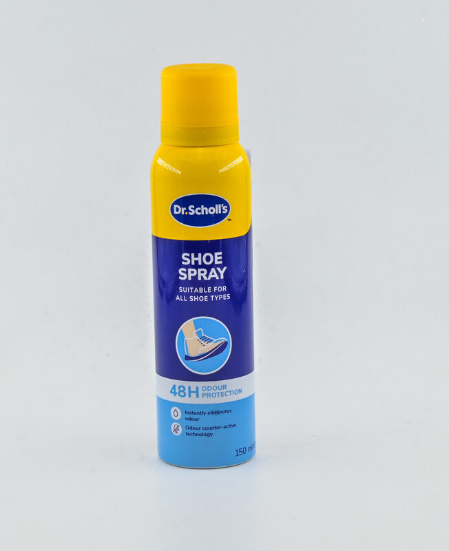 SCHOLL EXPERTCARE SPRAY PËR KËPUCËT. Mbrojtje kundër aromave. Formulë me efekt të dyfishtë që neutralizon erën e keqe dhe i mban këpucët të freskëta për 48 orë. Nuk lë shenja pas aplikimit. I përshtatshëm për të gjitha llojet e këpucëve. Përdorimi: Tunde mirë para përdorimit. Spërkat në mënyrë uniforme brenda këpucëve para dhe pas veshjes. Lëri të thahen. Fshi sipërfaqen e brendshme nëse mbetet produkt. Mund të përdoret edhe nga diabetikët ose personat me probleme të qarkullimit të gjakut. Kujdes: Shmang përdorimin në lëkurë të dëmtuar ose të irrituar. Në rast irritimi, ndërprite përdorimin. Mbaje larg fëmijëve. Shmang kontaktin me sytë. Produkt i ndezshëm; mbroje nga nxehtësia dhe rrezet e diellit. Mos e ekspozo në temperatura mbi 50 gradë. Mos e dëmto ose digj paketimin, edhe pasi të jetë zbrazur. Paketimi: 150 ml