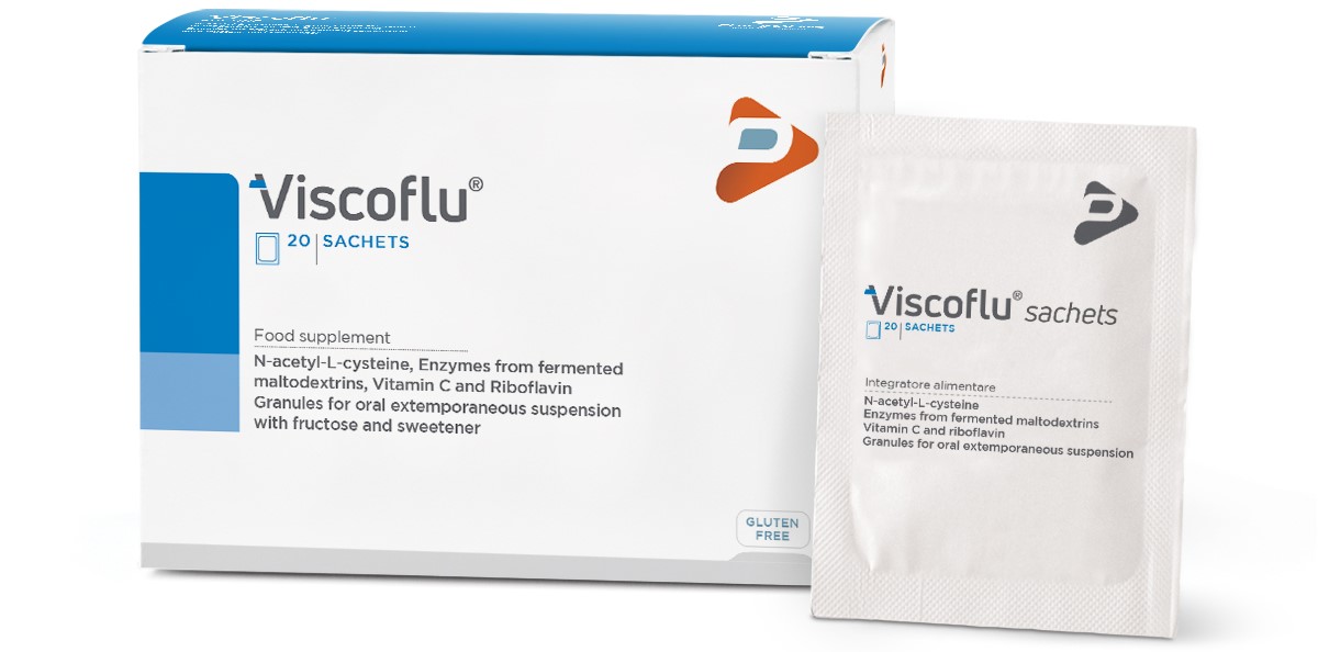 VISCOFLU x 20 BUSTINË x 3G. Aktivitet mukolitik superior për mirëqenien e rrugëve respiratore. Bustinë 3g, kuti x 20 bustina. Përbërja: N-acetil-L-cisteinë 200mg, Seratiopeptidazë (Serrazimes) 33mg, Vitaminë C 200mg, Riboflavinë 1,4mg. Indikacionet/Karakteristikat: Inflamacione akute dhe kronike të rrugëve të sipërme dhe të poshtme respiratore. Përdorimi: Fëmijët mbi 3 vjeç: 1 bustinë në ditë. Të rriturit: 2 bustina në ditë pas ushqimit.
